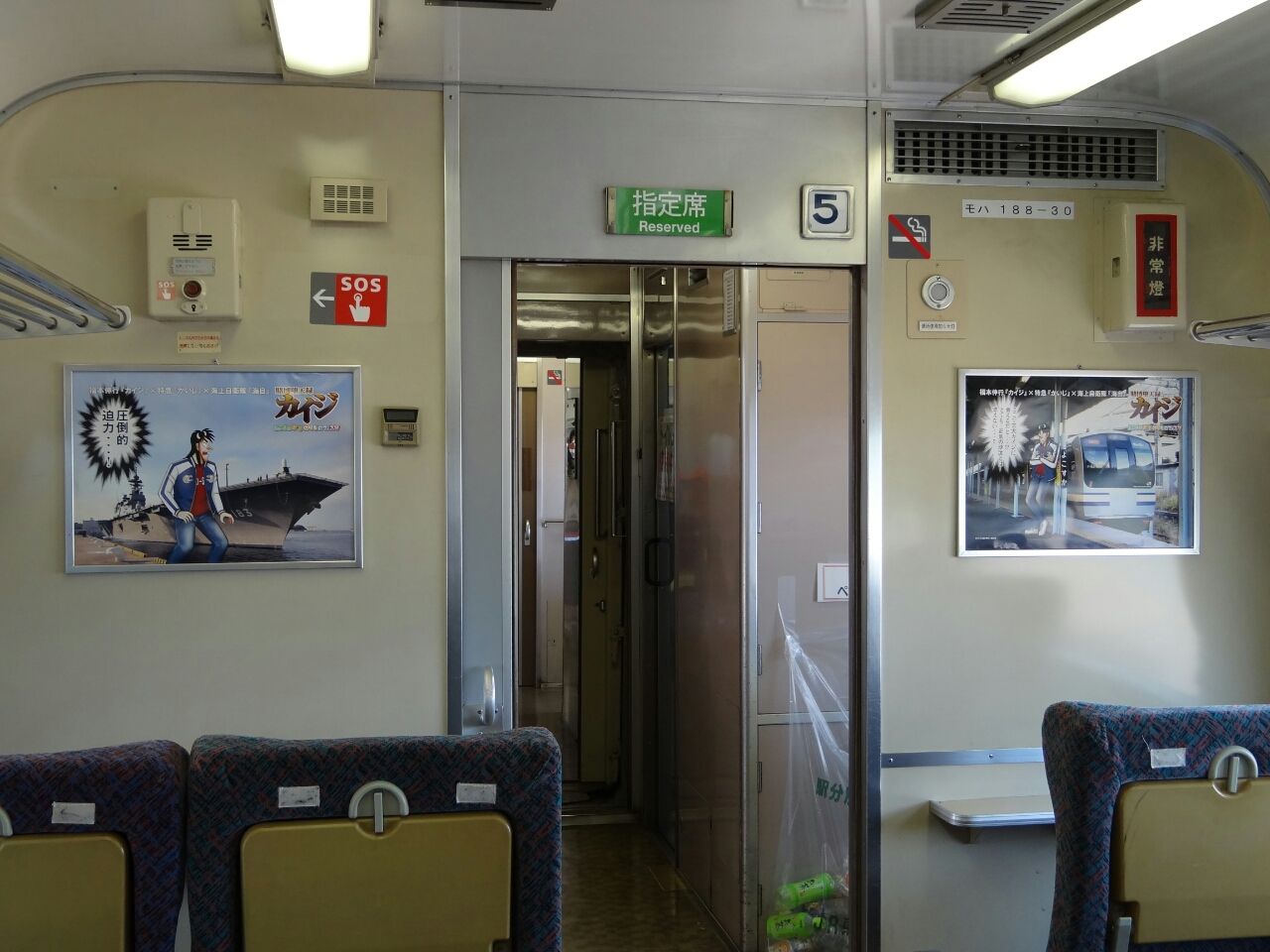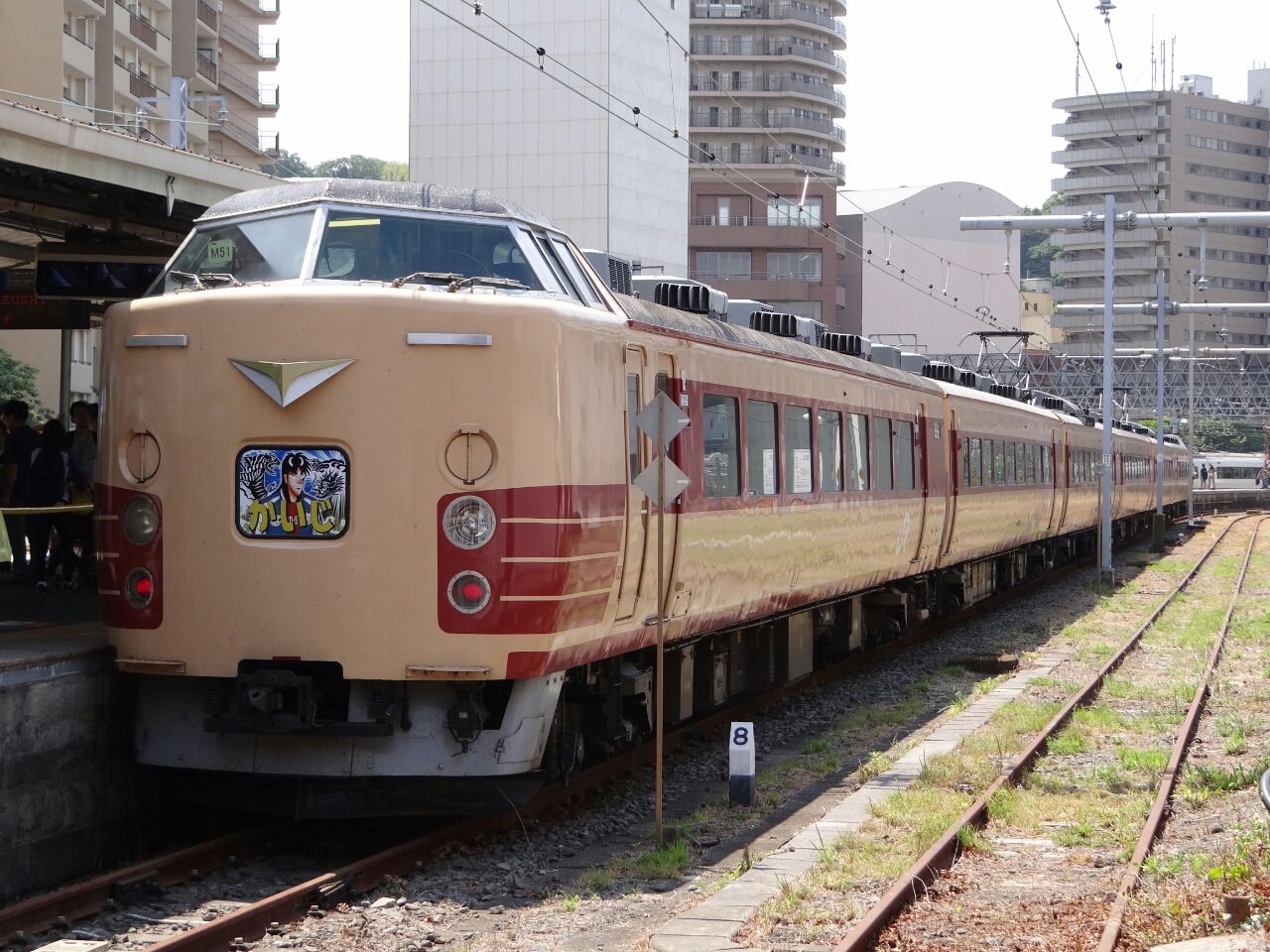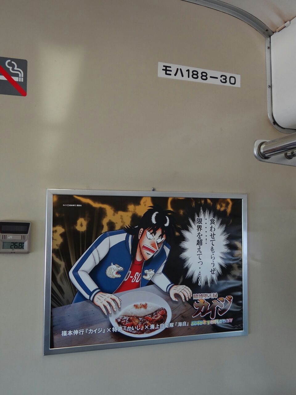 展示の一環として、189系国鉄色にカイジデザインのヘッドマークが取り付けられていました。